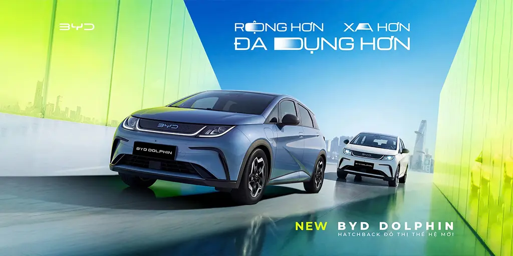BYD Dolphin thuần điện chuẩn đô thị lấy cảm hứng từ chuyển động năng động của cá heo khi nhảy vọt khỏi mặt biển.