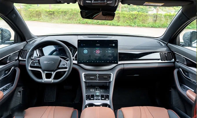 Nội thất 5 chỗ với màn hình trung tâm cảm ứng xoay kích thước lớn 15,6 inch, bảng đồng hồ kỹ thuật số 12,3 inch, kết nối Apple CarPlay/Android Auto không dây. Hệ thống âm thanh Infinity 10 loa (bản cao cấp), điều hòa tự động 2 vùng, sạc không dây kép, khóa thông minh, hỗ trợ mở khóa qua BYD Apps hoặc NFC.