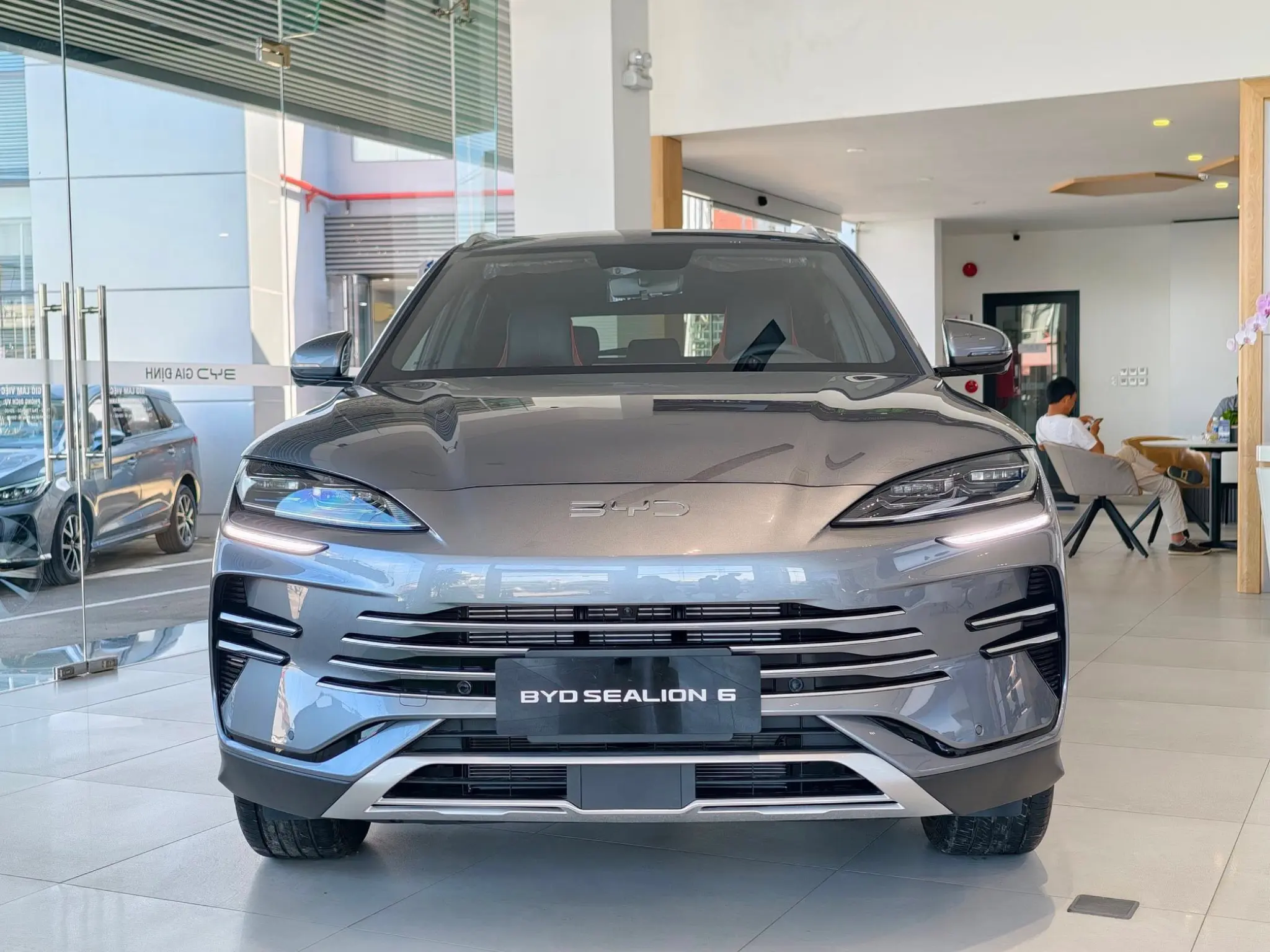 BYD Sealion 6 xám mang phong cách sang trọng, hiện đại và bền dáng, phù hợp với khách hàng yêu thích sự tinh tế, mạnh mẽ và công nghệ xe điện – hybrid tiên tiến của BYD.