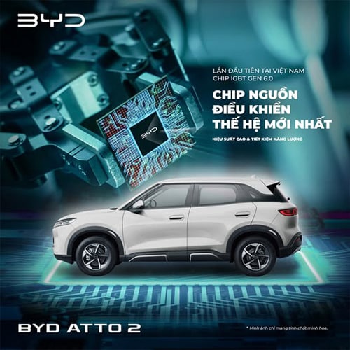 Điểm nổi bật nhất trên BYD Atto 2 chính là việc được trang bị chip IGBT Gen 6.0 – thế hệ chip điều khiển nguồn mới nhất, giúp nâng cao hiệu suất, tiết kiệm năng lượng và đảm bảo vận hành mượt mà, thông minh.